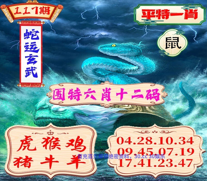 115期解蛇运玄武图: 六肖:马狗龙猴鼠蛇